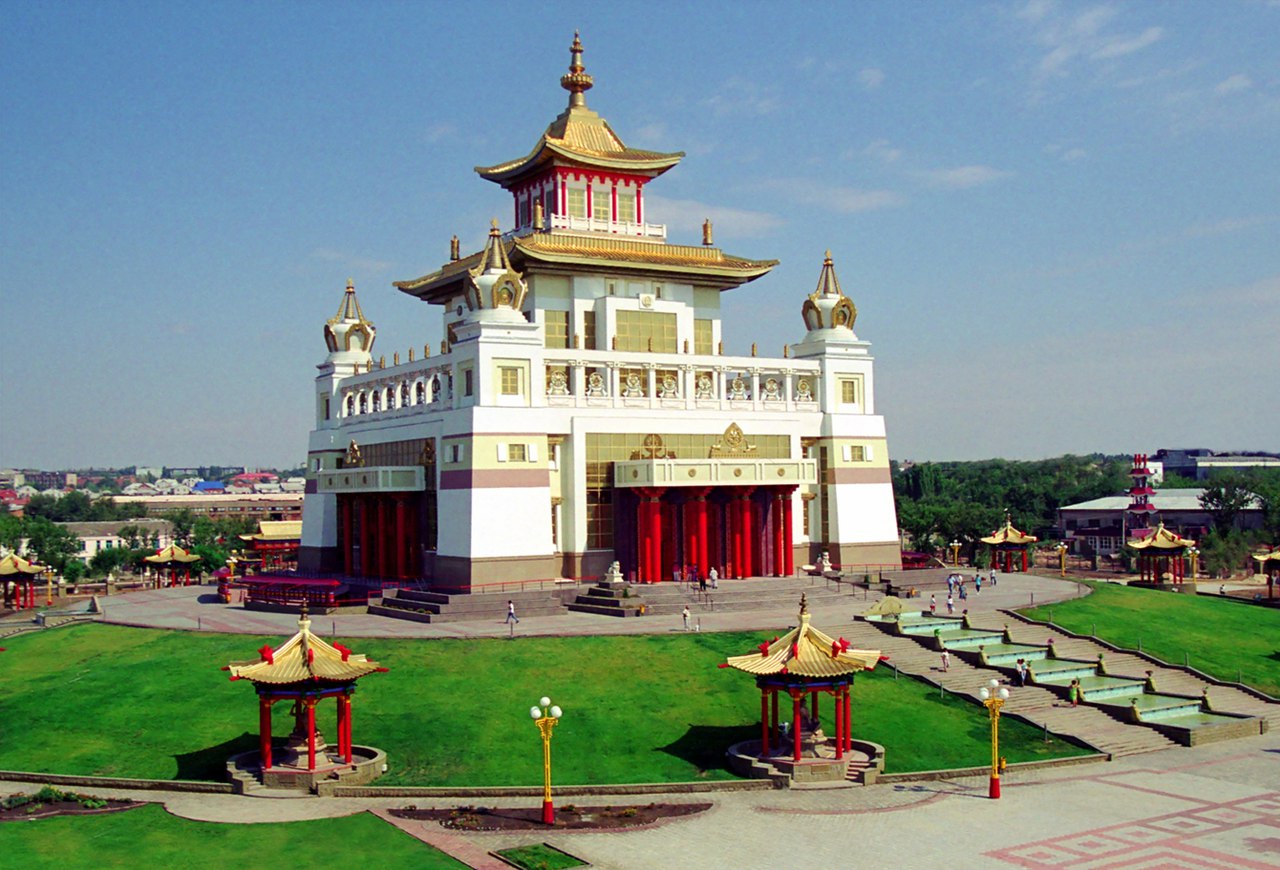 Республика Калмыкия - единственный регион в Европе, традиционно исповедующий буддизм. В 90-е годы прошлого столетия Элиста стала буддийским центром России — здесь в это время было возведено множество культурных объектов. Вот только несколько основных достопримечательностей города: это Пагода Семь Дней - сооружение высотой 15 метров, состоящее из семи ярусов, символизирующих семь дней недели; Пагода окружена ансамблем фонтанов; памятник Хонгор - Алый Лев. Это - монумент древнему воину, который выпускает из лука сразу четыре стрелы. Хонгор - один из главных героев калмыцкого народного эпоса Джангар - древнего устного наследия калмыцкого народа, передающийся из уст в уста на протяжении многих столетий. Нельзя не отметить и еще одну достопримечательность — Золотую Обитель Будды Шакьямуни. В этом величественном белоснежном храме проводятся как повседневные, так и праздничные службы.