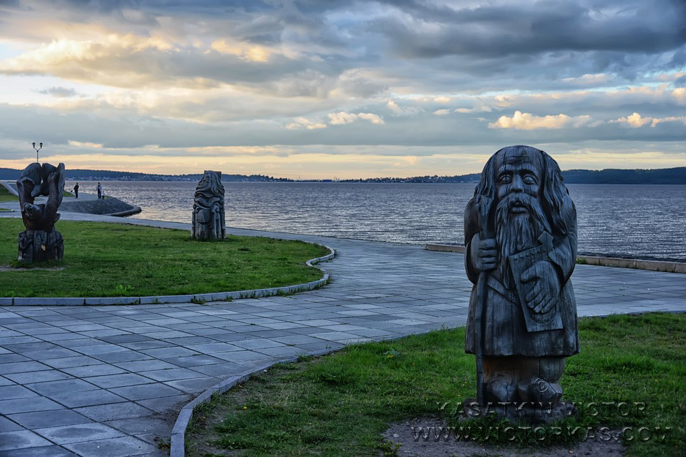 У Петрозаводска есть и неофициальное название - «Город пяти морей», ведь он располагается на берегу второго по величине в Европе Онежского озера, а оно, в свою очередь, через систему рек и каналов соединяется с Баренцевым, Белым, Балтийским, Каспийским и Чёрным морями. На набережной города существует своего рода музей под открытым небом. Его экспонаты — подлинные арт-объекты, которые былм подарены Петрозаводску его городами-побратимами. К таким подаркам относятся «Дерево желаний» (г.Умео, Швеция), «Место встречи (г.Му-и-Рана, Норвегия), «Рыбаки» (г.Дулут, США).