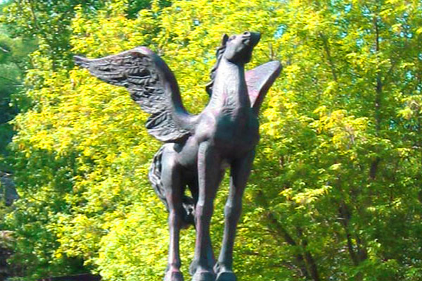 Еще одним символом Златоуста является скульптура-фонтан «Крылатый конь». Он установлена возле городского главпочтамта и посвящён гербу города. Символом Златоуста крылатый конь стал потому, что в древности здешние оружейные мастера выбивали на своих изделиях знак именно этого животного. Златоуст даже часто называют «городом Крылатого коня».